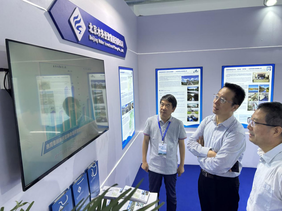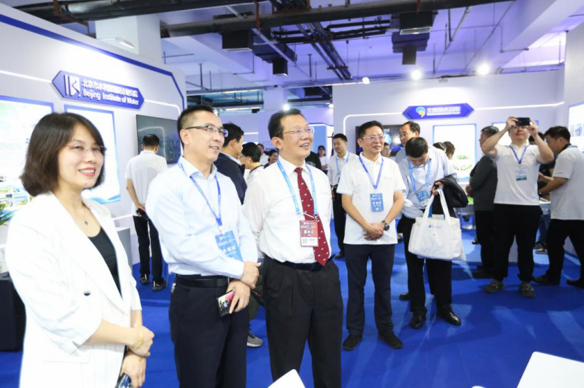 9月11日,北京市水务局局长潘安君参观北京水务展区, 并前往马博网投展位参观指导,马博网投总会计师张睿、副总经理张文理陪同。